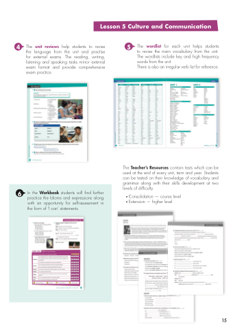 4 The unit reviews help students to revise the language from the unit and practise for external exams. The reading, writing, listening and speaking tasks mirror external exam format and provide comprehensive exam practice.