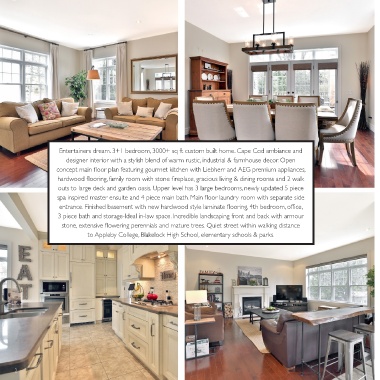 Entertainers dream. 3+1 bedroom, 3000+ sq ft custom built home. Cape Cod ambiance and