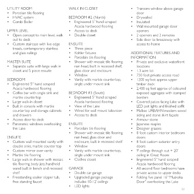 • Large walk-in closet Acacia hardwood flooring • Covered patios facing Lake with