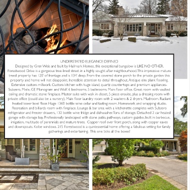 and downspouts. Kolbe windows. 215 Forestwood is a quintessential home offering a fabulous setting for family