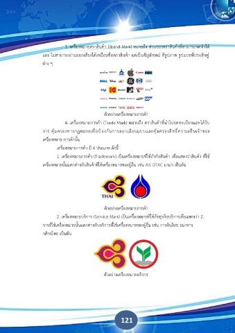 1. เครื่องหมายการค้า (Trademark) เป็นเครื่องหมายที่ใช้กํากับสินค้า เพื่อแสดงว่าสินค้า ที่ใช้