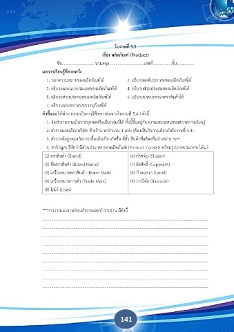 5. อธิบายส่วนประกอบของผลิตภัณฑ์ได้ 6. อธิบายประเภทของตราสินค้าได้