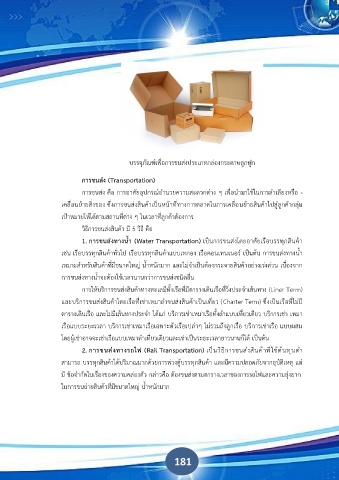 1. การขนส่งทางน้ำ (Water Transportation) เป็นการขนส่งโดยอาศัยเรือบรรทุกสินค้า