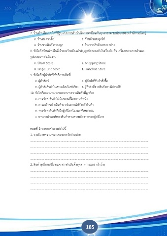 7. ร้านค้าปลีกแบบใดที่มีรูปแบบการดําเนินกิจการเหมือนกันทุกสาขาตามนโยบายของสํานักงานใหญ่