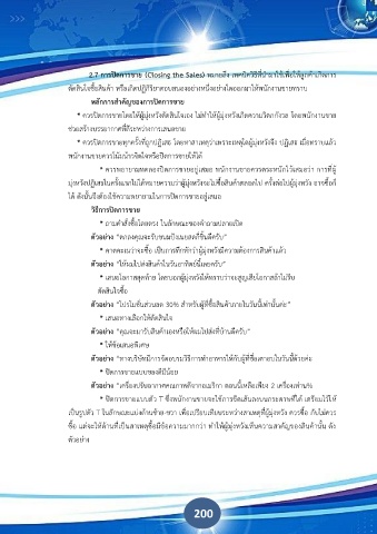 2.7 การปิดการขาย (Closing the Sales) หมายถึง เทคนิควิธีที่นํามาใช้เพื่อให้ลูกค้าเกิดการ