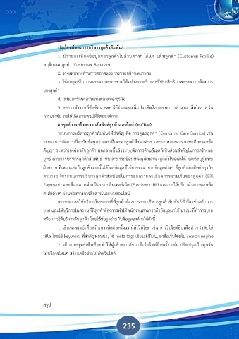 ยุทธ์ ด้านการบริหารลูกค้าสัมพันธ์ เช่น สามารถย้อนหลังดูอีเมลของลูกค้าในอดีตได้ และระบุผู้แทน