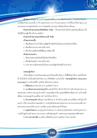 ได้ ดังนั้นจึงจําเป็นต้องเขียนให้เกิดความน่าเชื่อถือมีความเป็นไปได้ “บทสรุปผู้บริหาร (Executive