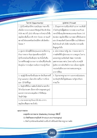 1. ผู้บริโภคหันมาให้ความสนใจสุขภาพมากขึ้น 1. เป็นอุตสาหกรรมที่แข่งขันด้านราคา จะเห็นได้