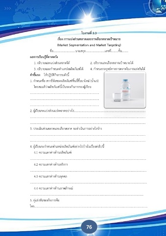 1. อธิบายและแบ่งส่วนตลาดได้ 2. อธิบายและเลือกตลาดเป้าหมายได้