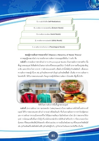 ระดับที่ 1 ความต้องการทางด้านร่างกาย (Physiological Needs) เป็นความต้องการทางสรีระ ขั้น