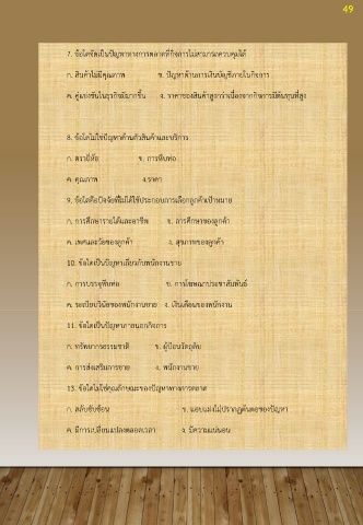 8. ข้อใดไม่ใช่ปัญหาด้านตัวสินค้าและบริการ