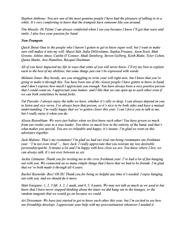 Alyssa Rosenblum- We were just babies when we first knew each other! You have grown so much from our rookie year to a true leader. You show so much love to the entirety of the band, and that’s what makes you special. You are so relatable and happy, it’s insane. I’m glad we went on this adventure together.