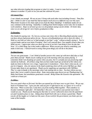 I can’t thank you enough. We are at year 3 living with each other (not including Greene). Time flies fast. I think it is fair to say band has had an impact each of us in a different way over the years. What better location to live than right across from the Music Building? It definitely makes for an easy commute in the morning. GameDay’s walking from North Campus weren’t fun, but we made it work somehow. Hope we all meet up once we all graduate and go out for drinks. Or better idea, since we are all of age let’s do it before graduation in May.
