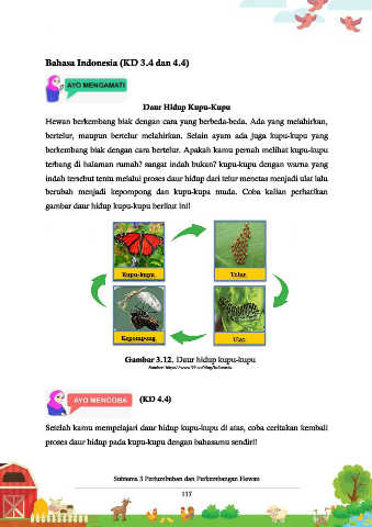 berubah menjadi kepompong dan kupu-kupa muda. Coba kalian perhatikan