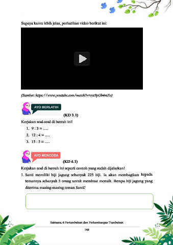 1. Santi memiliki biji jagung sebanyak 225 biji. Ia akan membagikan kepada