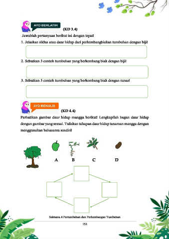 dengan gambar yang sesuai. Tuliskan tahapan daur hidup tanaman mangga dengan