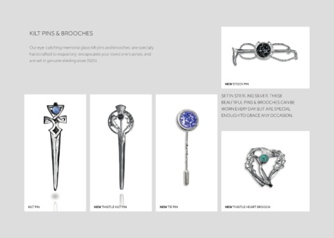 Our eye-catching memorial glass kilt pins and brooches are specially