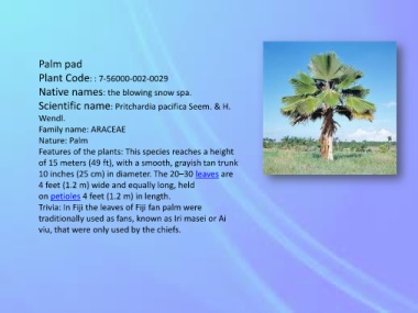 Trivia: In Fiji the leaves of Fiji fan palm were