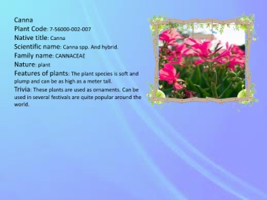 Scientific name: Canna spp. And hybrid.