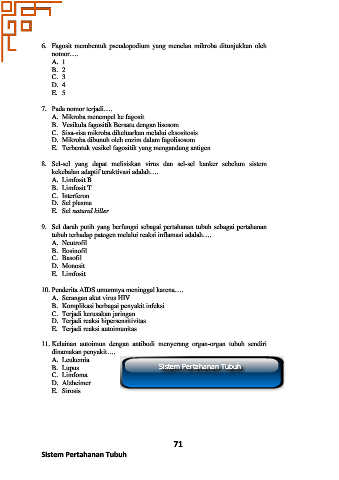 9. Sel darah putih yang berfungsi sebagai pertahanan tubuh sebagai pertahanan