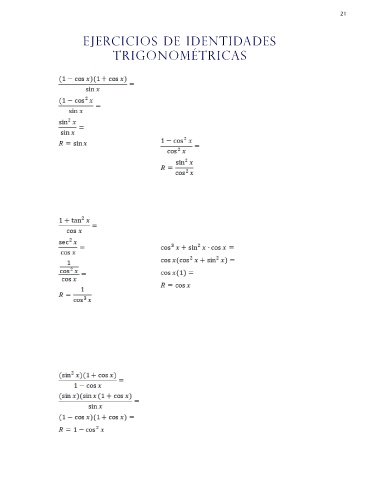 21 EJERCICIOS DE IDENTIDADES TRIGONOMÉTRICAS