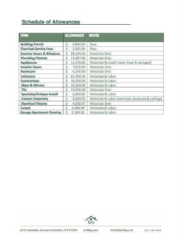 ITEM ALLOWANCE NOTES