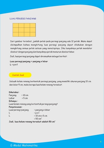 Dari gambar tersebut, jumlah petak pada persegi panjang ada 12 petak. Maka dapat