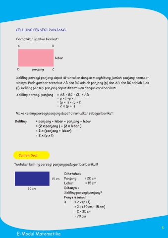 (l). Keliling persegi panjang dapat ditentukan dengan cara berikut: