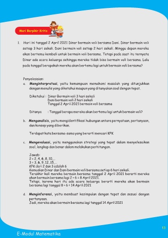 setiap 3 hari sekali. Dani bermain voli setiap 2 hari sekali. Minggu depan mereka