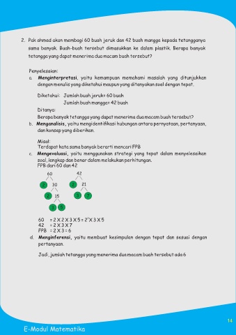 2. Pak ahmad akan membagi 60 buah jeruk dan 42 buah mangga kepada tetangganya