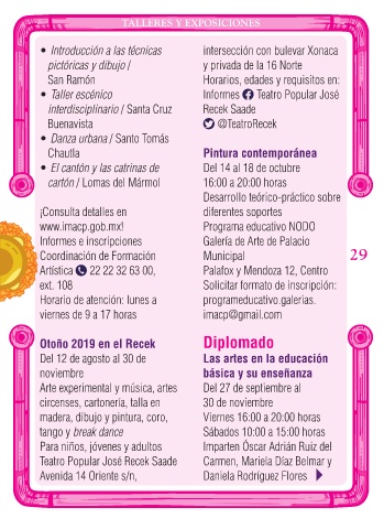 Informes e inscripciones Galería de Arte de Palacio