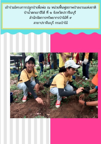 เข้าร่วมโครงการปลูกป าเพื อพ่อ ณ หน่วยฟ นฟูสภาพป าสงวนแห่งชาติ ป านํ าตกเขาอีโต้ ที ๑ จังหวัดปราจีนบุร สํานักจัดการทรัพยากรป าไม้ที ๙ สาขาปราจีนบุร กรมป าไม้