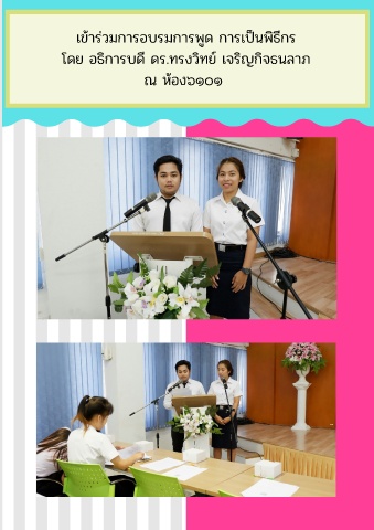 เข้าร่วมการอบรมการพูด การเป นพิธีกร โดย อธิการบดี ดร.ทรงว ทย์ เจร ญกิจธนลาภ ณ ห้อง๖๑๐๑