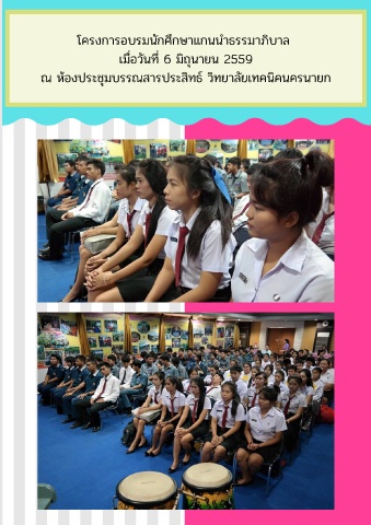 โครงการอบรมนักศึกษาแกนนําธรรมาภิบาล เมื อวันที 6 มิถุนายน 2559 ณ ห้องประชุมบรรณสารประสิทธ์ ว ทยาลัยเทคนิคนครนายก