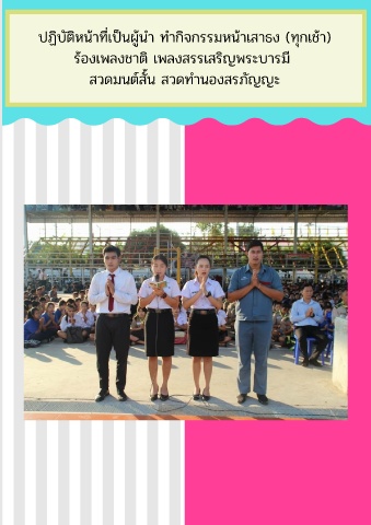 ปฏิบัติหน้าที เป นผู้นํา ทํากิจกรรมหน้าเสาธง (ทุกเช้า) ร้องเพลงชาติ เพลงสรรเสร ญพระบารมี สวดมนต์สั น สวดทํานองสรภัญญะ