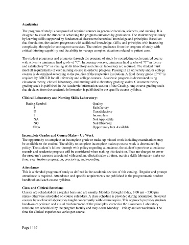 meet all requirements of each nursing course in order to progress. Passing in all university and/or college