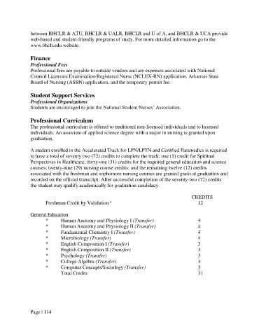 courses; twenty-nine (29) nursing course credits; and the remaining twelve (12) credits