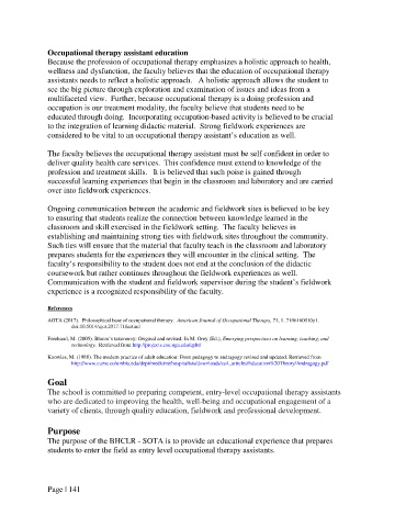 wellness and dysfunction, the faculty believes that the education of occupational therapy