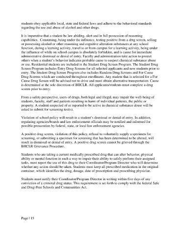 is determined at the sole discretion of BHCLR. All applicants/students must complete a drug