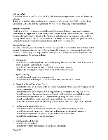 Essential Functions, established by the school, are capabilities that must be demonstrated by the
