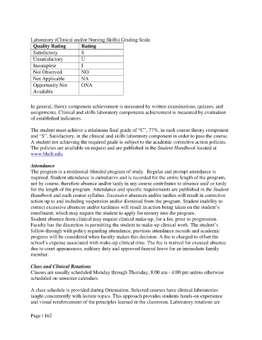 assignments. Clinical and skills laboratory components achievement is measured by evaluation
