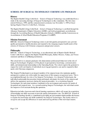 SCHOOL OF SURGICAL TECHNOLOGY CERTIFICATE PROGRAM