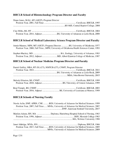Position Year, 2017, Full Time ......... BSN, University of Arkansas for Medical Sciences, 2005
