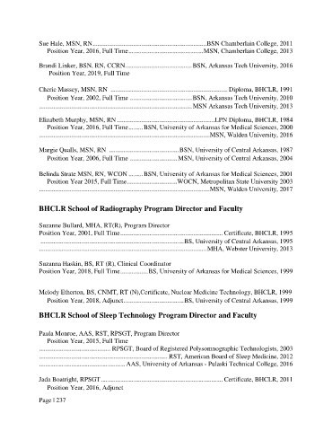 Position Year, 2018, Full Time ................. BS, University of Arkansas for Medical Sciences, 1999