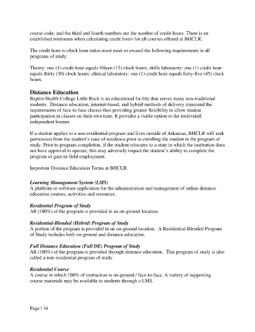 established minimum when calculating credit hours for all courses offered at BHCLR: