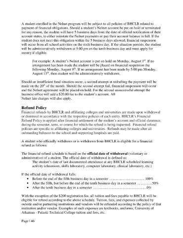 A student enrolled in the Nelnet program will be subject to all policies of BHCLR related to