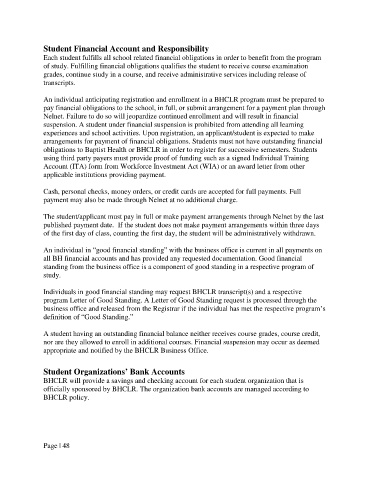 obligations to Baptist Health or BHCLR in order to register for successive semesters. Students