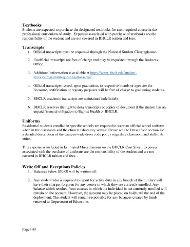 associated with the purchase of uniforms are the responsibility of the student and are not