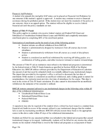 BHCLR restores unearned aid used to pay institutional charges in the following order within 45