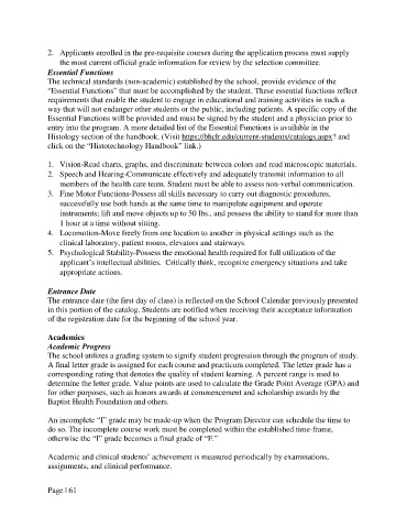 “Essential Functions” that must be accomplished by the student. These essential functions reflect